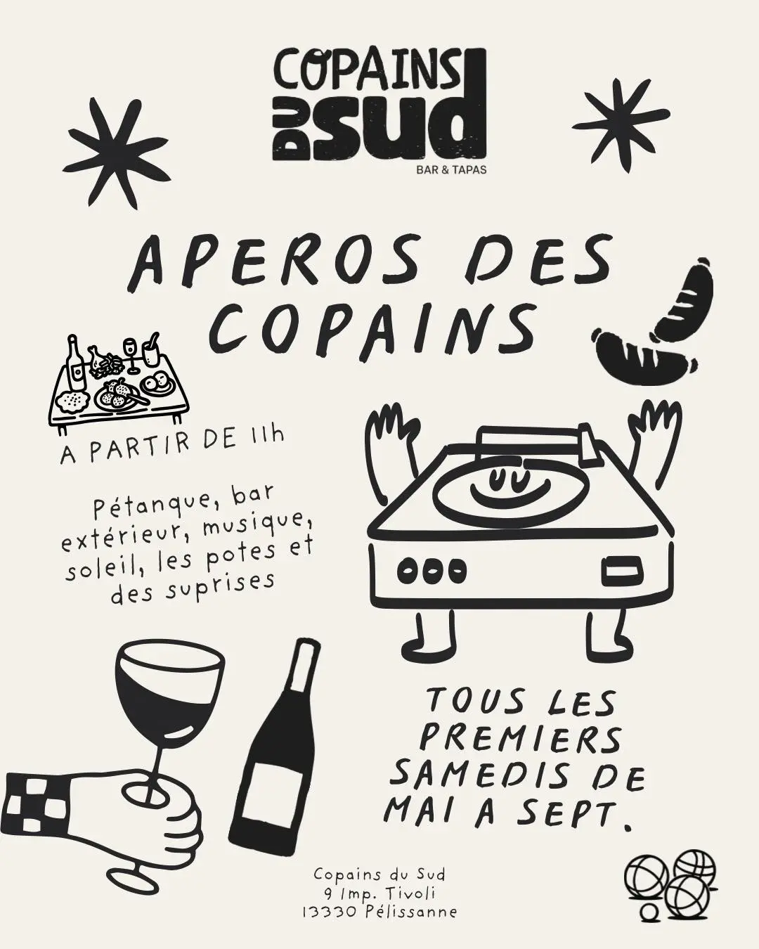 Les Copains du Sud vous convient à leurs apéros ! Pour profiter des beaux jours, une fois par mois, ils vous proposent une journée pour chiller entre copains.