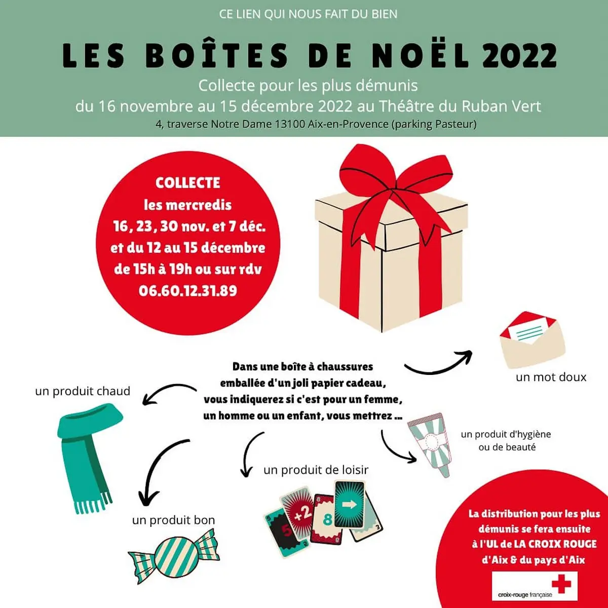 Collecte pour les plus démunis au théâtre du Ruban Vert. La distribution se fait ensuite à l'UL de La Croix Rouge d'Aix et du pays d'Aix.