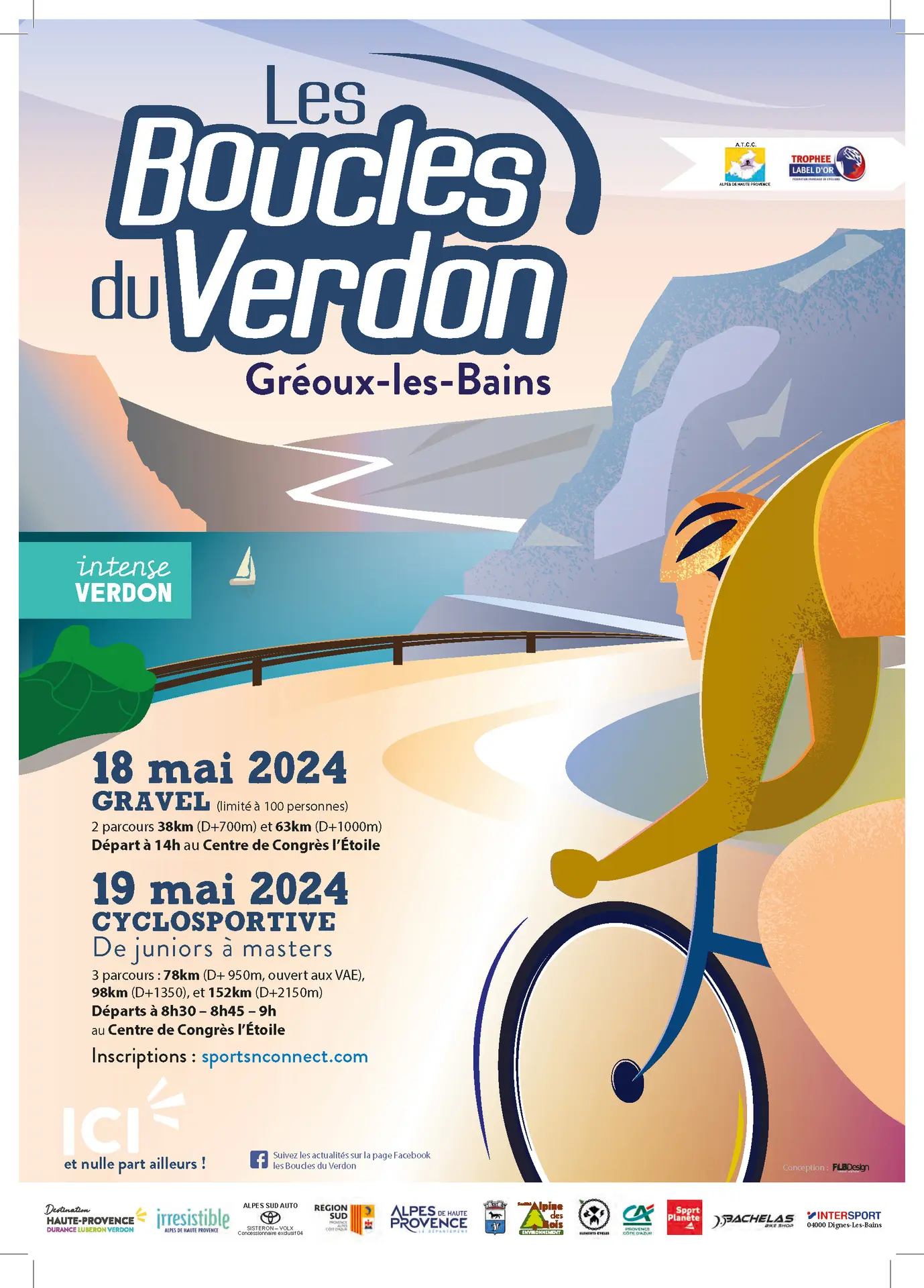 Plusieurs centaines de passionnés sont attendus à Gréoux-les-Bains pour participer à la 25e édition des Boucles du Verdon. Cette cyclosportive est ouverte à tous, des juniors aux masters, licenciés ou non. Trois parcours sont proposés : 150 kilomètres (2150 mètres de dénivelé), 98 kilomètres (1350 mètres de dénivelé) et 75 kilomètres (950mètres de dénivelé). A noter que les vélos à assistance électriques sont autorisés sur la petite boucle.