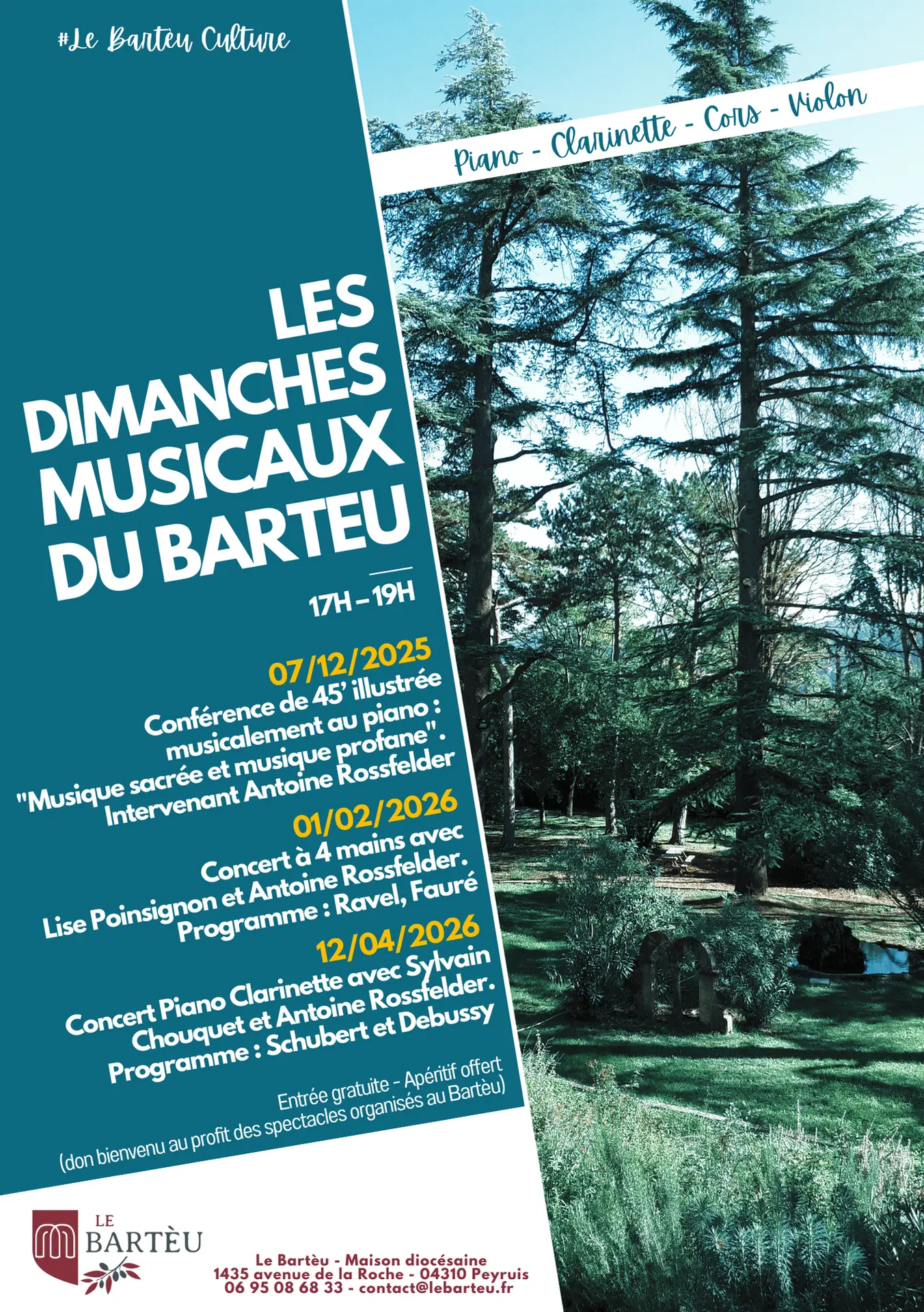 Le Bartèu vous invite cette année à assister à 5 concerts offerts au BARTEU !