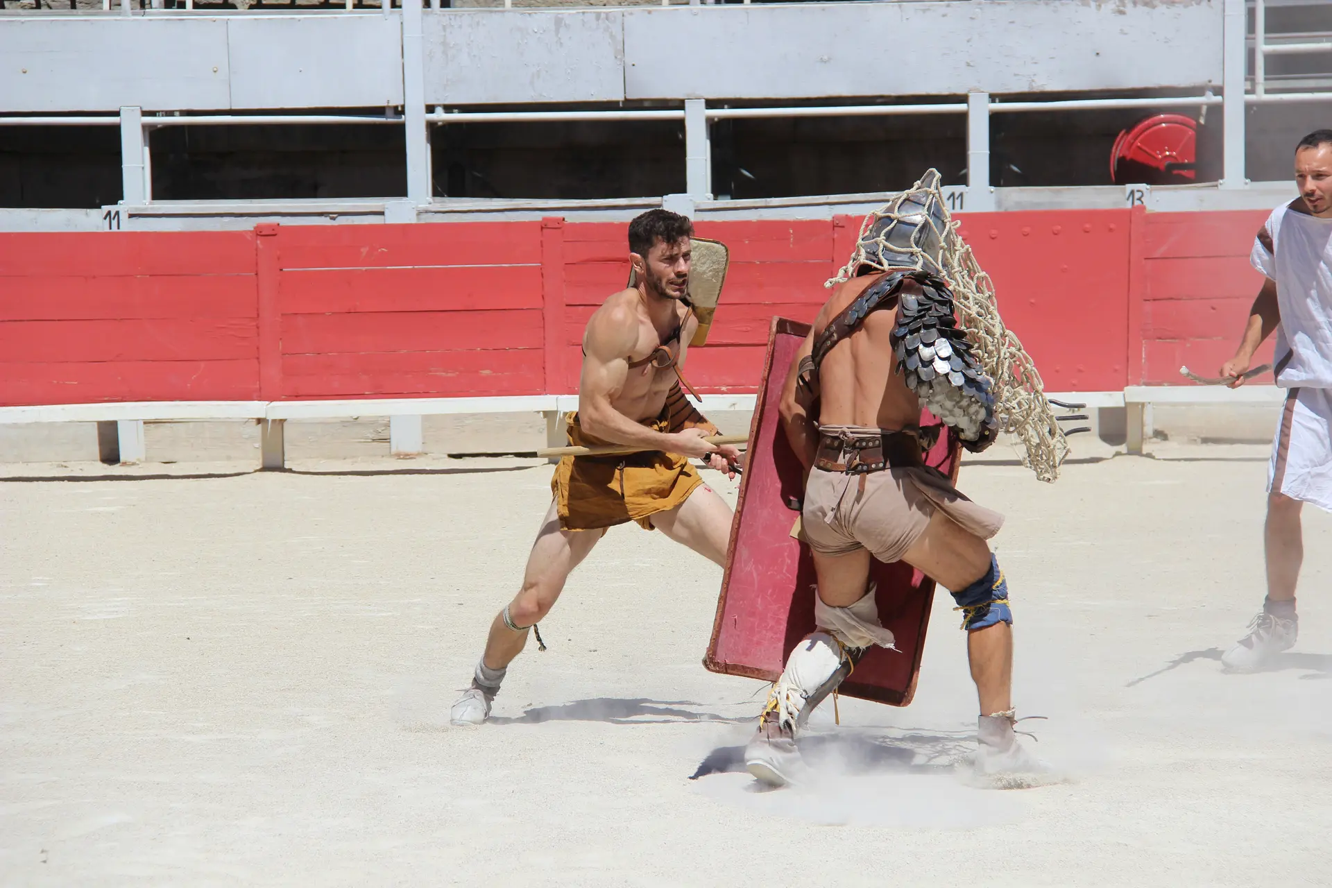 Assistez aux restitutions de combats, puis rencontrez les gladiateurs munis de leur équipement.