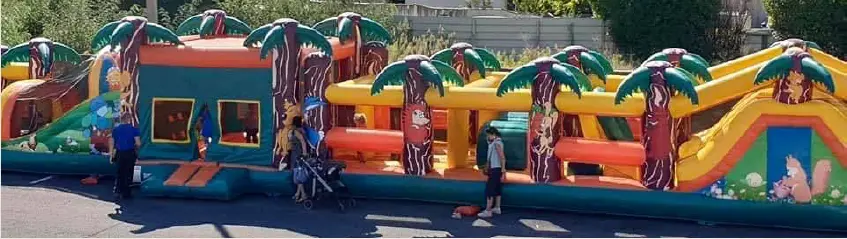 Un gonflable de 25m de long sur le thème Amazonie et le baby air ball pour les plus petits