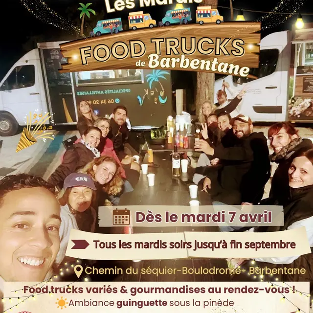 Cette année, retrouvez : Mistral Galette, Faï Avans, L’Arche Gourmand, La Kaz’O Délices, Saïgon en Provence, La Cantine du Sud, Les Cigales, John Coffey et les nouveaux : Pop’E Truck, L’Authentik, Grillades sur le pouce, Gelateria Notre Dame.