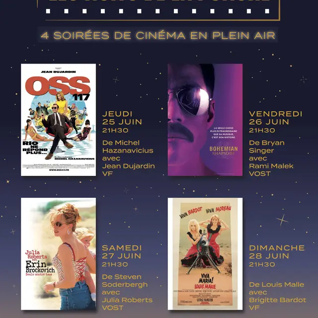 4 soirées de cinéma en plein air sous le ciel étoilé du mois de juin.