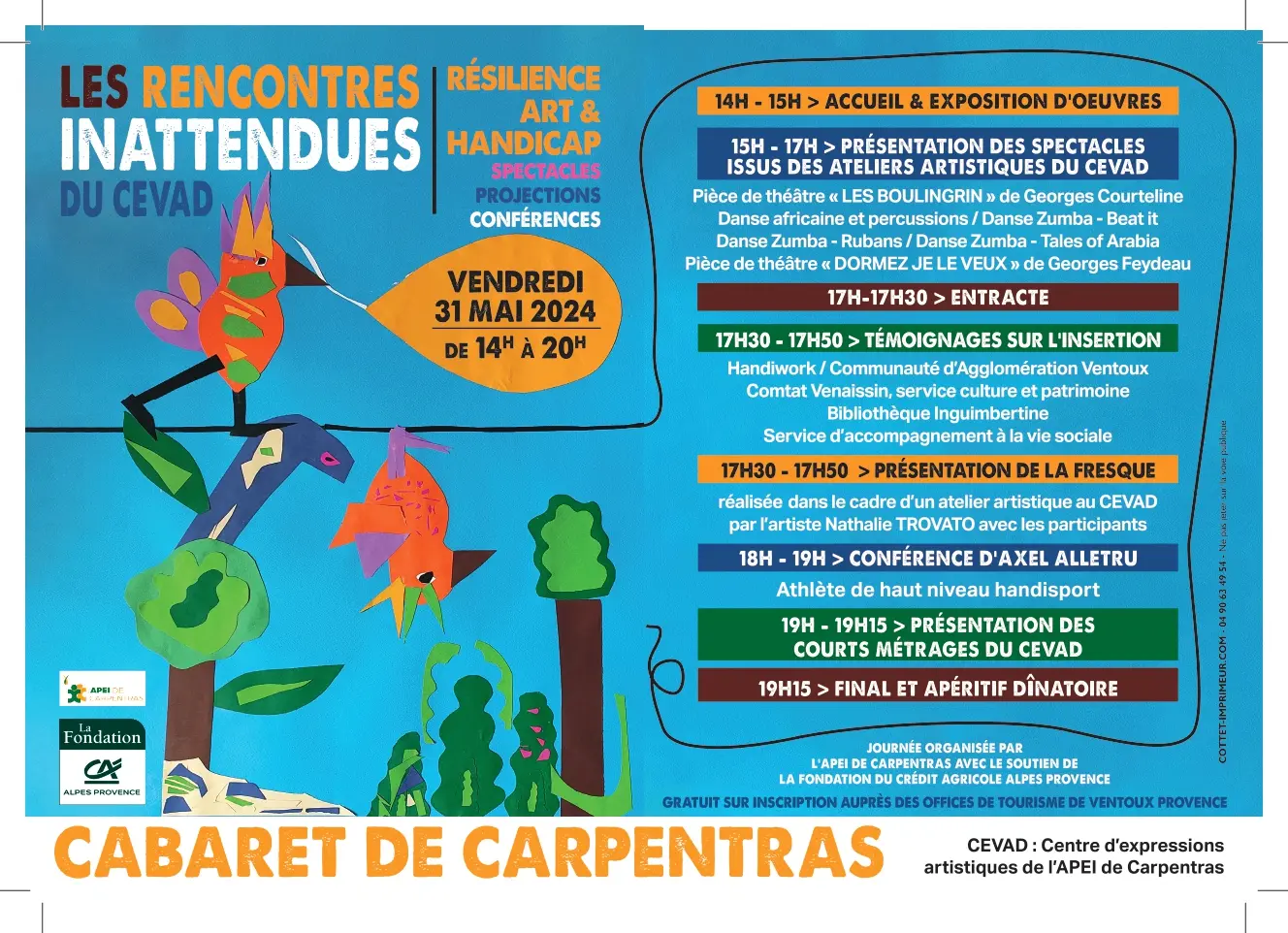 Le Cevad (Centre d'Exposition et de Valorisation Artistiques des Différences) organise un après-midi culturel avec du théâtre, des expositions, des danses, des témoignages, des courts métrages...