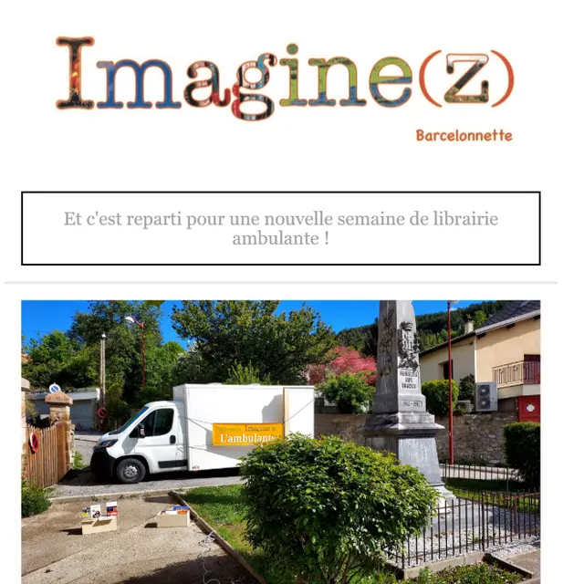 Venue de la librairie itinérante IMAGINE(Z) à la maison de retraite : découverte de livres adulte et enfant, le 6 juillet 2024.