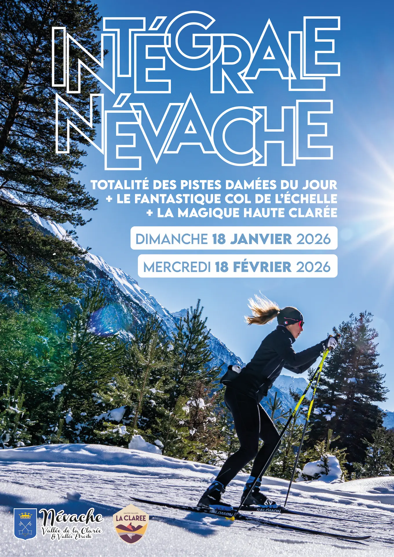 Tout le domaine nordique de Névache damé du jour : depuis le Col de l’Échelle , Plampinet, jusqu’à Laval: 50km aller/retour ! Une journée placée sous le signe de la promenade et de la liberté, à ne manquer sous aucun prétexte !