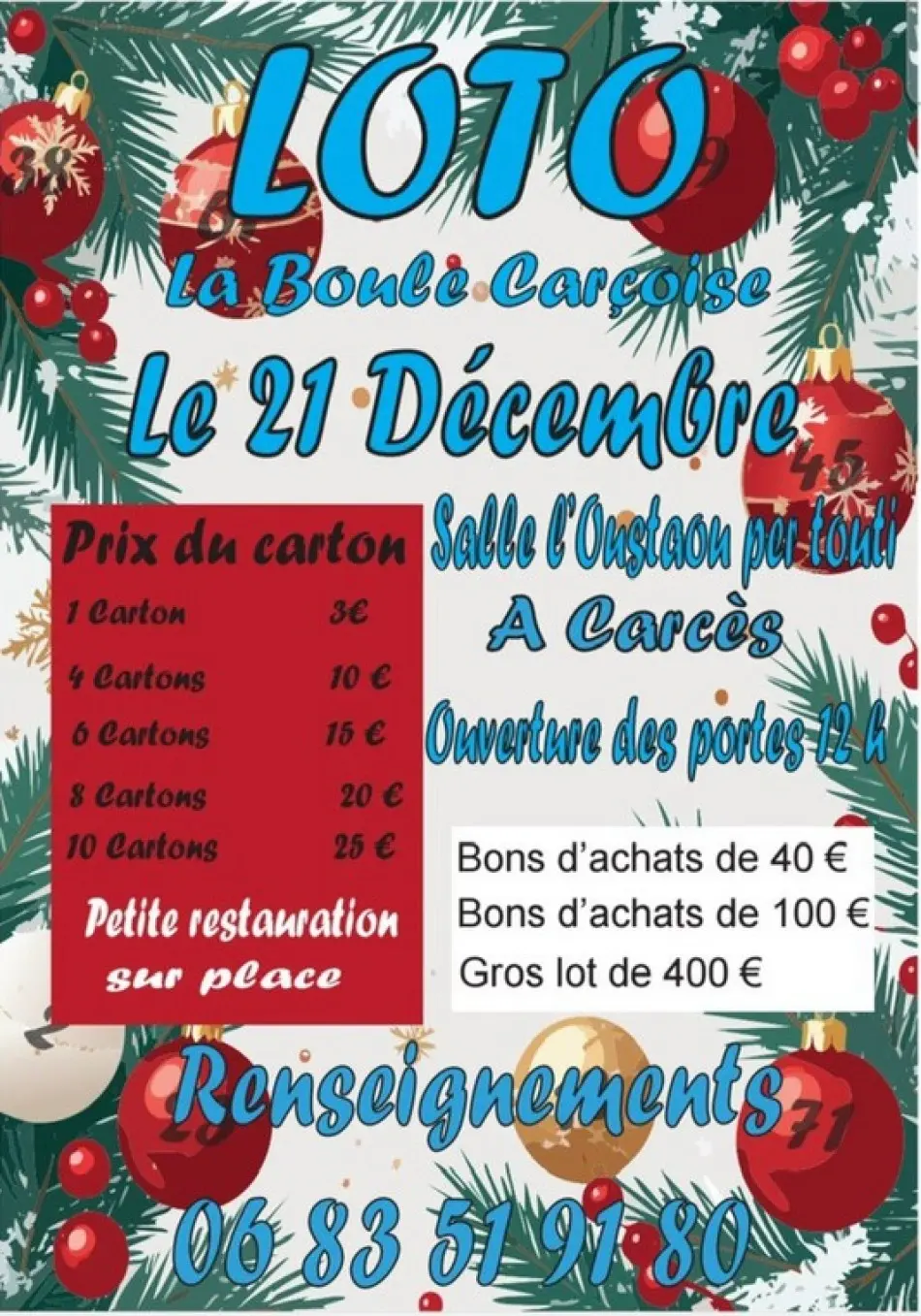> Le carton: 3€ | Les 4 cartons: 10 € | Les 6 cartons : 15 € | Les 8 cartons : 20 € | les 01 cartons : 25 €