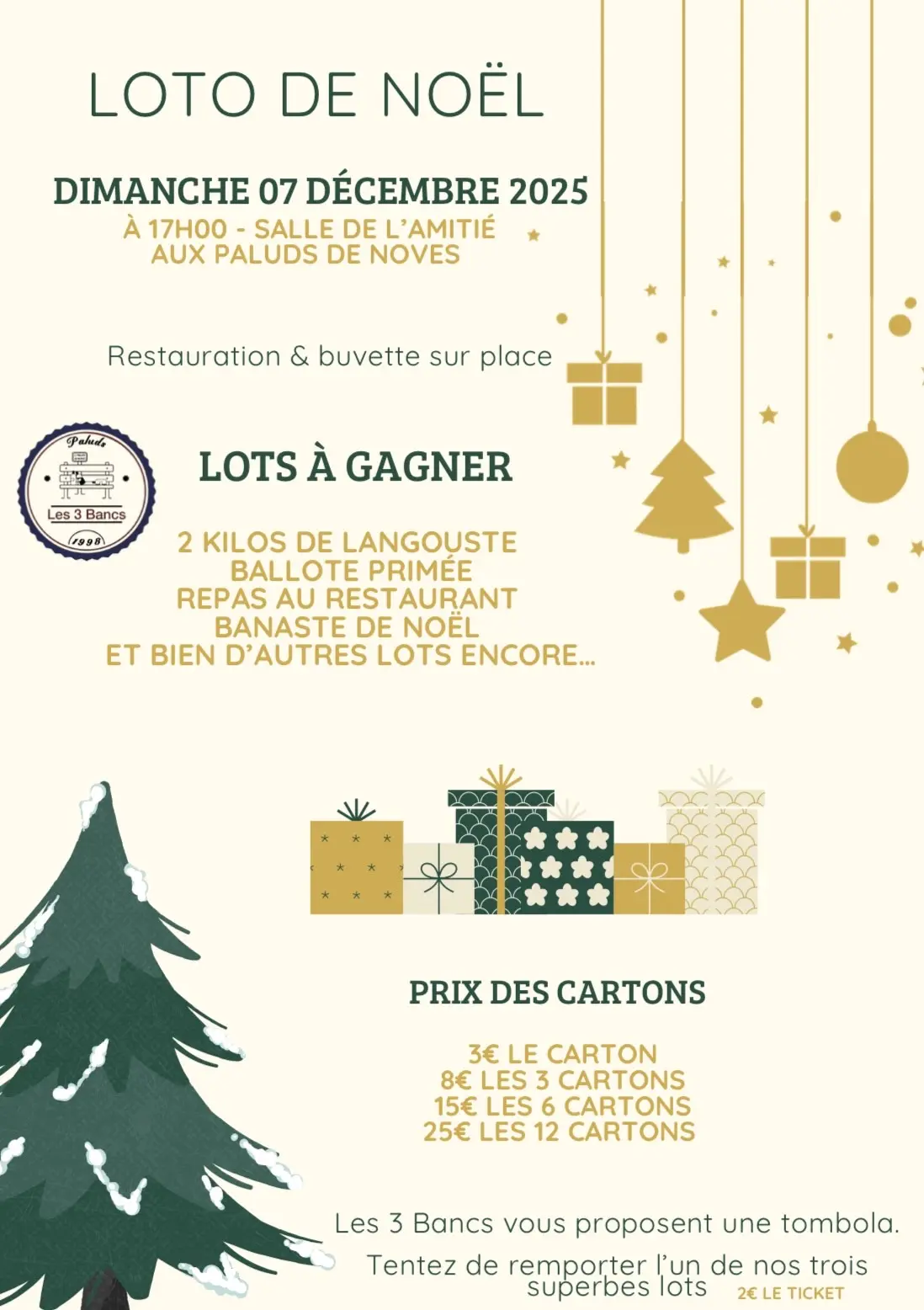 Loto de Noël organisé par les 3 Bancs à la Salle de l’Amitié.