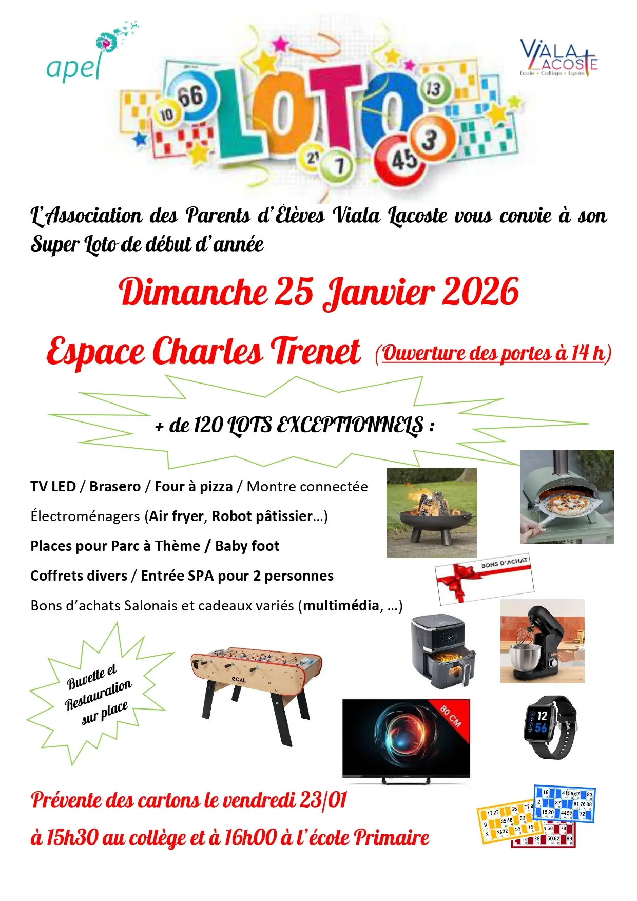 Quine ! Viala Lacoste organise son loto avec de nombreux lots à gagner. Rendez-vous à l’Espace Charles Trenet à 13h30.