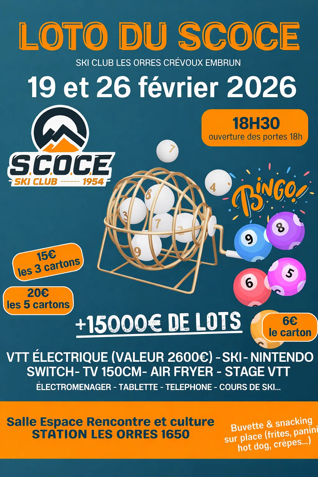 Gros lots : vélo électrique - Nintendo Switch - TV 150cm- AIr Fryer, Stages VTT, ski et plein d’autres surprises.