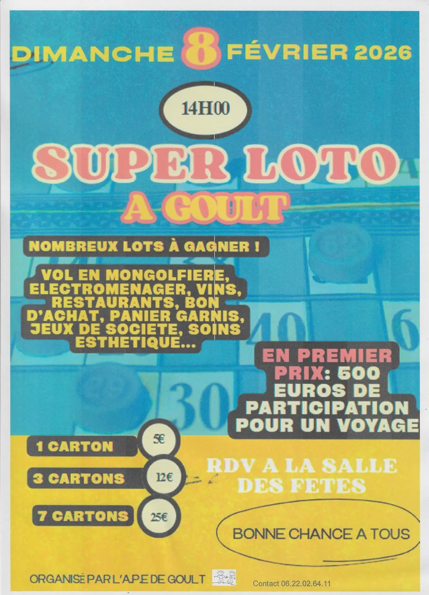 De nombreux lots à gagner pour le loto de l'A.P.E de Goult à la salle des Fêtes à 14h.
