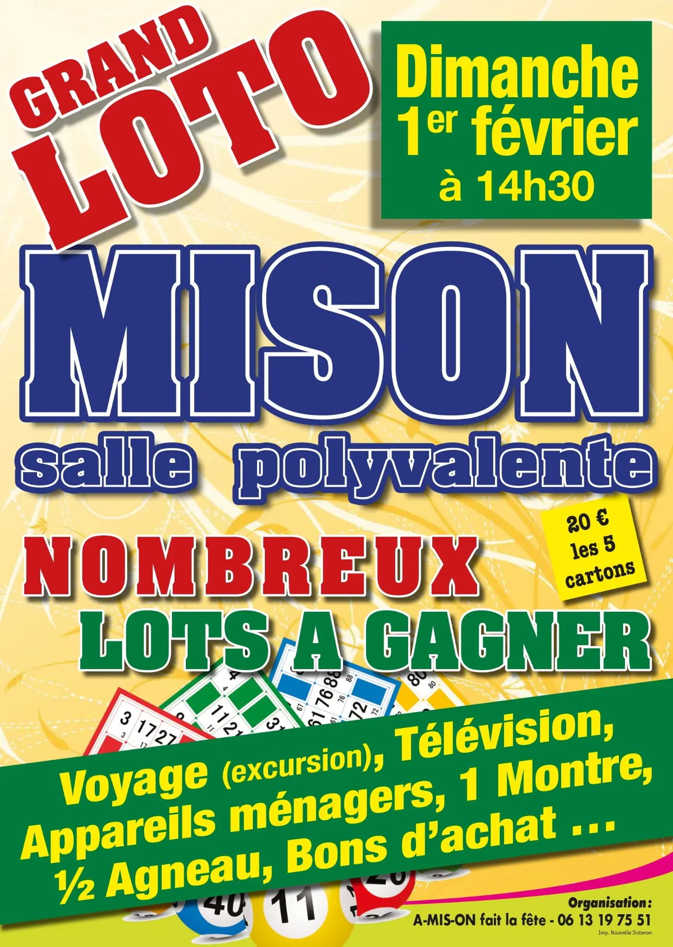 Avec de nombreux lots à gagner : voyage (excursion), télévision, appareils ménagers, 1 montre, 1/2 agneau, bons d'achat,...