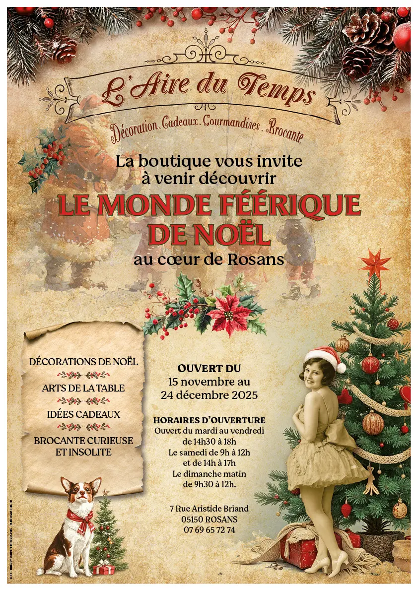 La boutique "L'aire du temps" vous accueille dans la bonne humeur, au cœur de Rosans. Vous y trouverez des objets de décoration, des cadeaux originaux.