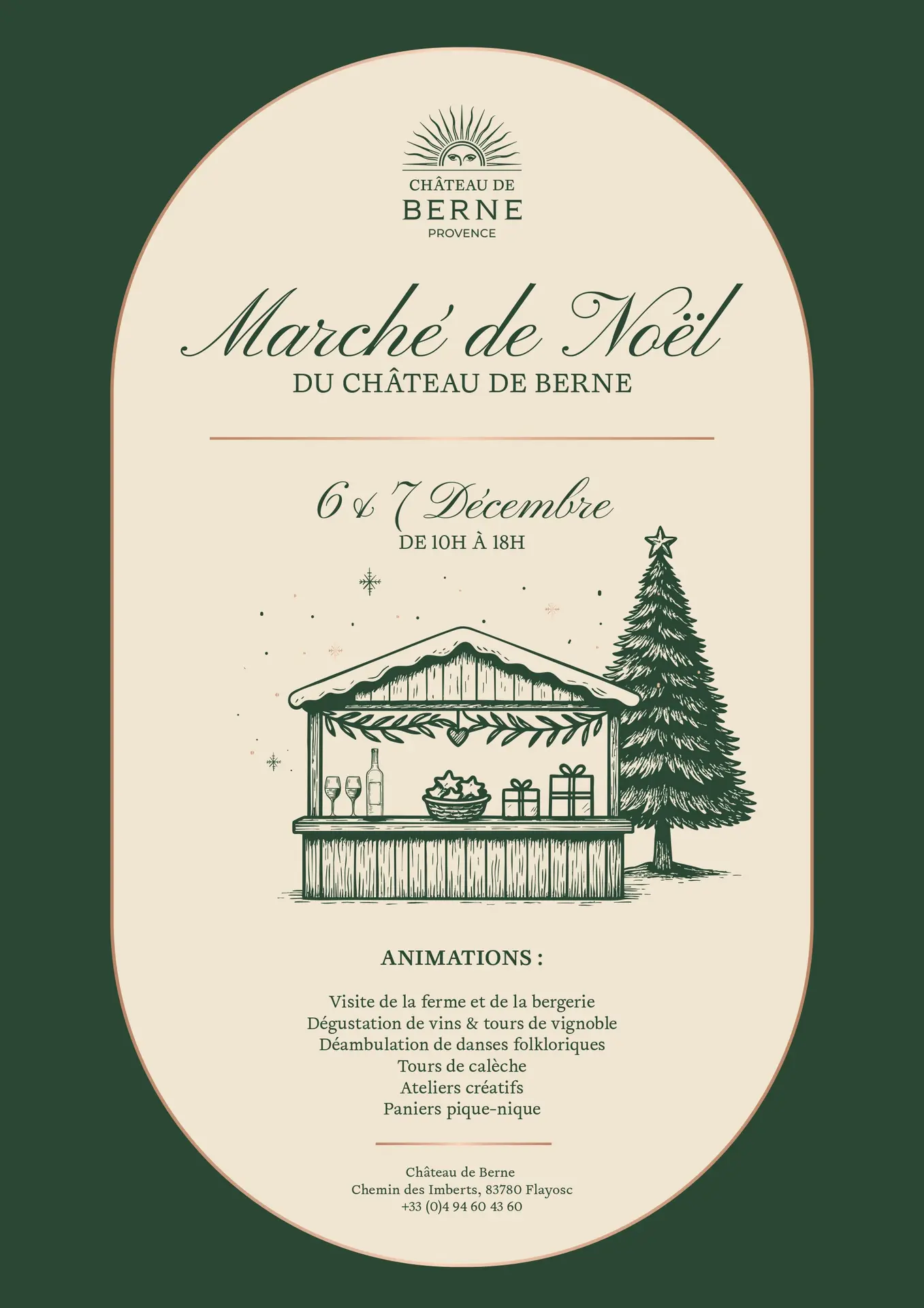 marché de Noël avec visite de la ferme, dégustation de vins, tours de vignoble en calèche, ateliers créatifs et déambulations