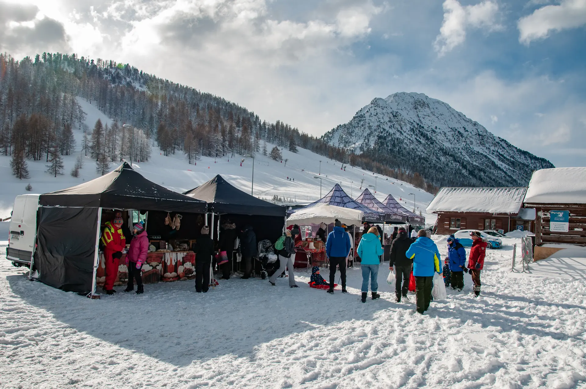 Chaque année pendant la saison d'hiver Montgenèvre accueil tous les mercredis plusieurs exposants sur le parking du transalpin.