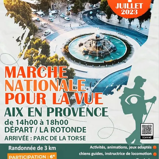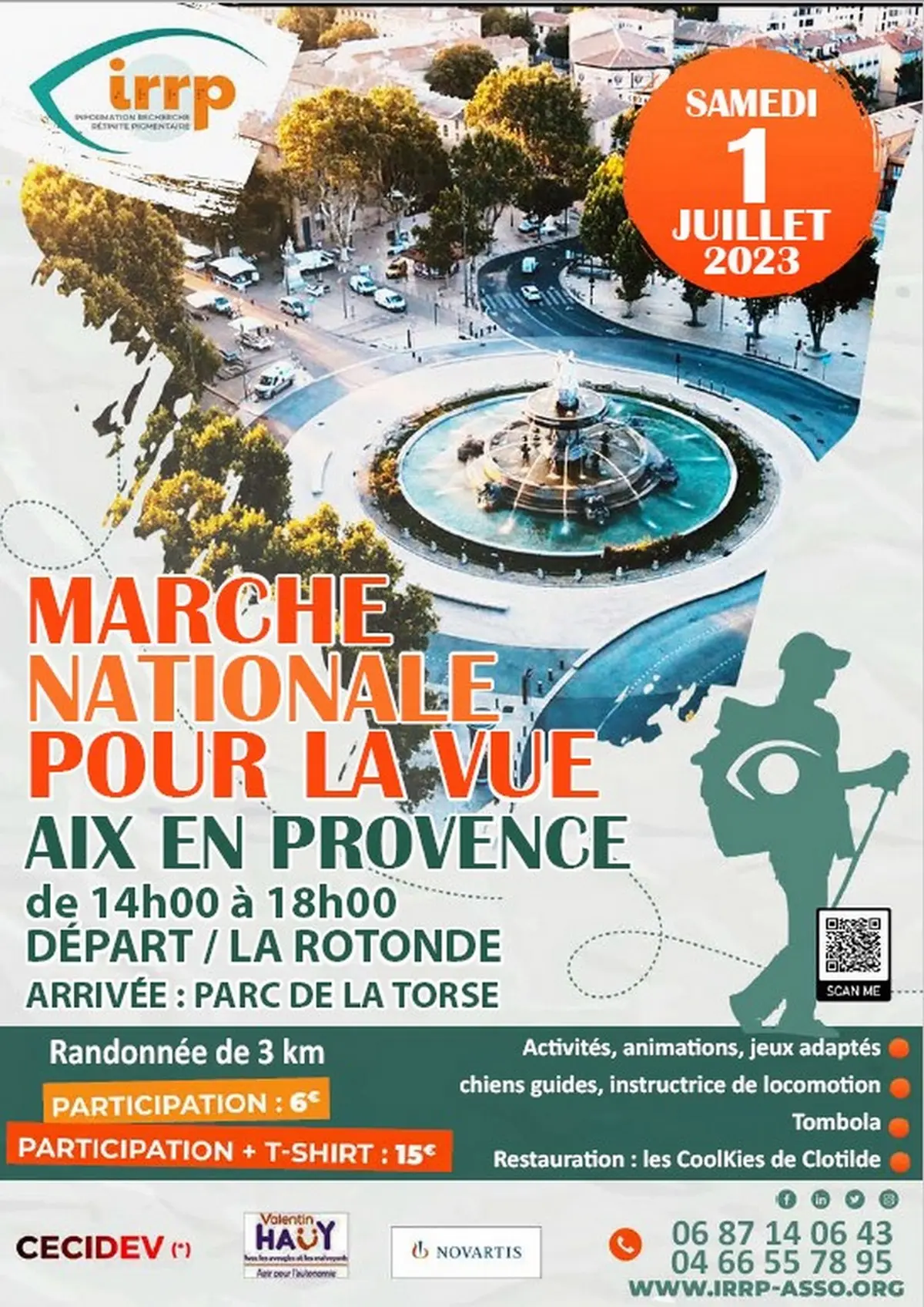Venez marcher avec l'Association Valentin Haüy d'Aix en Provence et soutenir la Recherche médicale. De la Rotonde jusqu'au Parc de la Torse où vous seront proposés une Tombola, de délicieux cookies, des jeux et une démo de chiens guides d'aveugles.