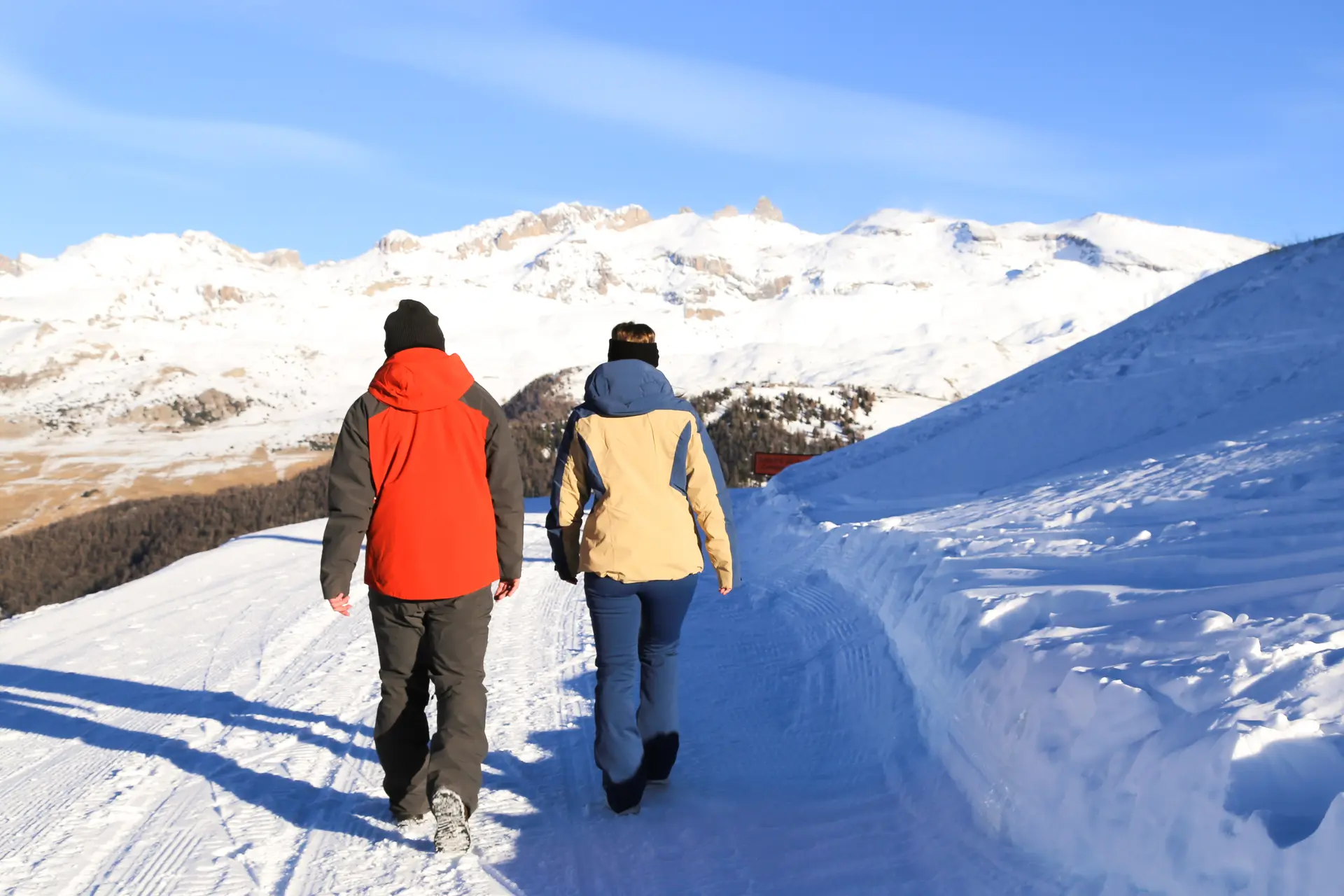 Prévoyez une tenue chaude et des chaussures adaptées à la marche en terrain enneigé.