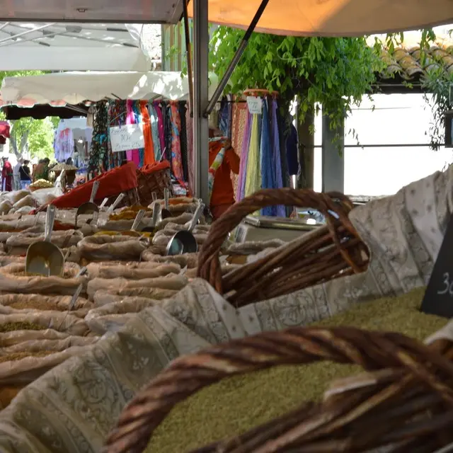 Superbe petit marché provençal, avec de beaux stands colorés et des produits frais de saison. Artisans et producteurs s'y disputent la vedette dans une ambiance des plus conviviales.