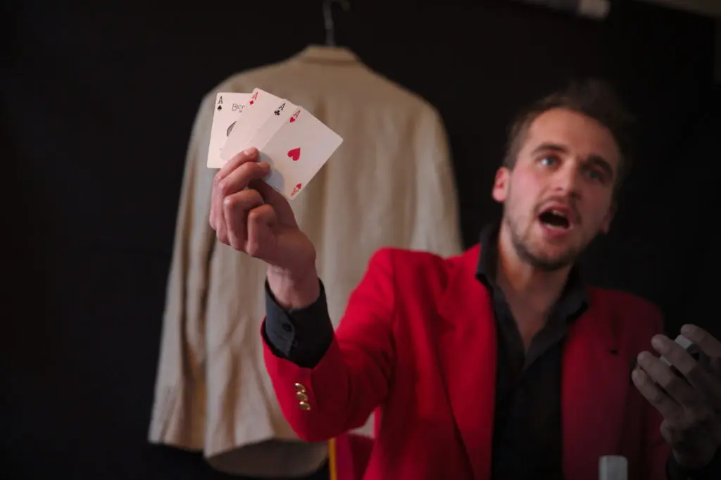 Spectacle qui aborde les questions de la manipulation, avec humour et malice. En jonglant avec la prestidigitation et le théâtre, Sylvain s'amuse à faire le lien entre Politique et Magie.