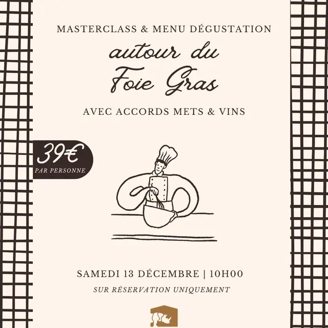 Plongez au cœur des saveurs festives avec notre masterclass exclusive, suivie d’un menu dégustation raffiné autour du foie gras.