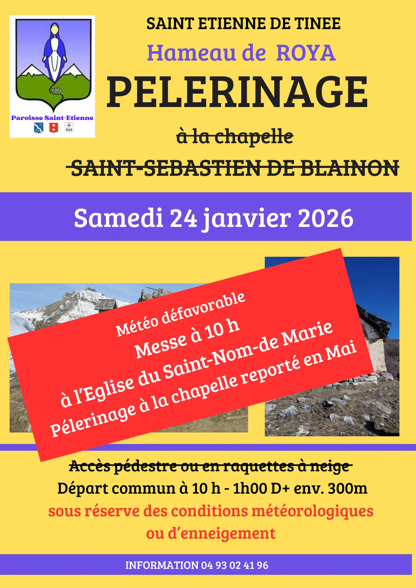 Messe de la Saint Sébastien au hameau de Roya dans l'église du Saint-Nom de Marie à 10h . Le pèlerinage prévu à la chapelle de Blainon est reporté au mois de mai (météo défavorable prévue le 24 janvier).