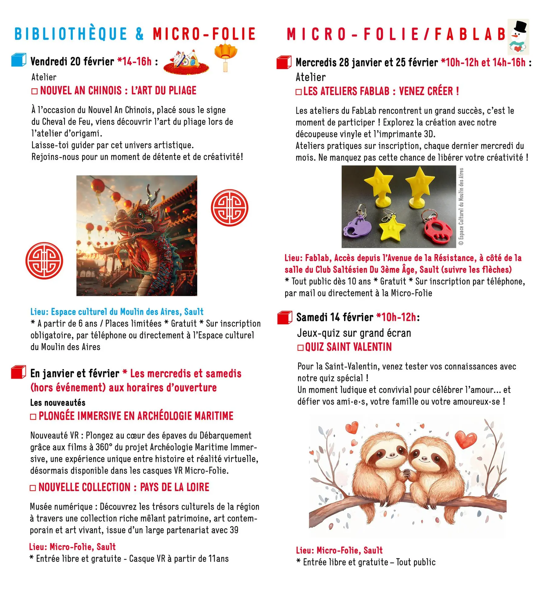 Ateliers pratiques sur inscription, chaque dernier mercredi du mois.