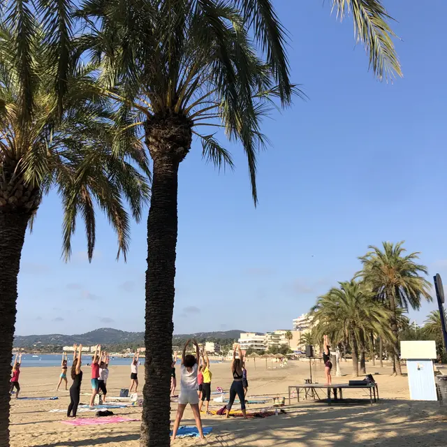 Cours de sport gratuits sur les plages du Lavandou tous les mardis du 15 juin au 15 septembre, mobilité et stretching à la plage centrale du Lavandou de 8h30 à 9h30. Idéal pour assouplir le corps et se détendre face à la mer.