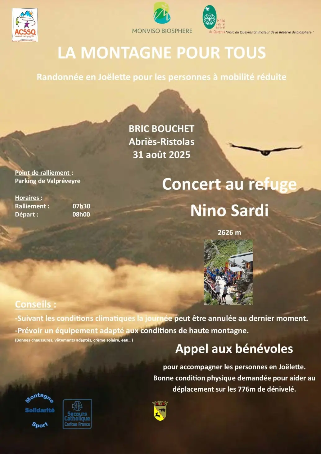 Là-haut, le Mont Viso sera ton fond d'écran. Le cirque rocheux du Bric Bouchet fera office d'amphithéatre où les sons des cuivres raisonneront dans toute la montagne.