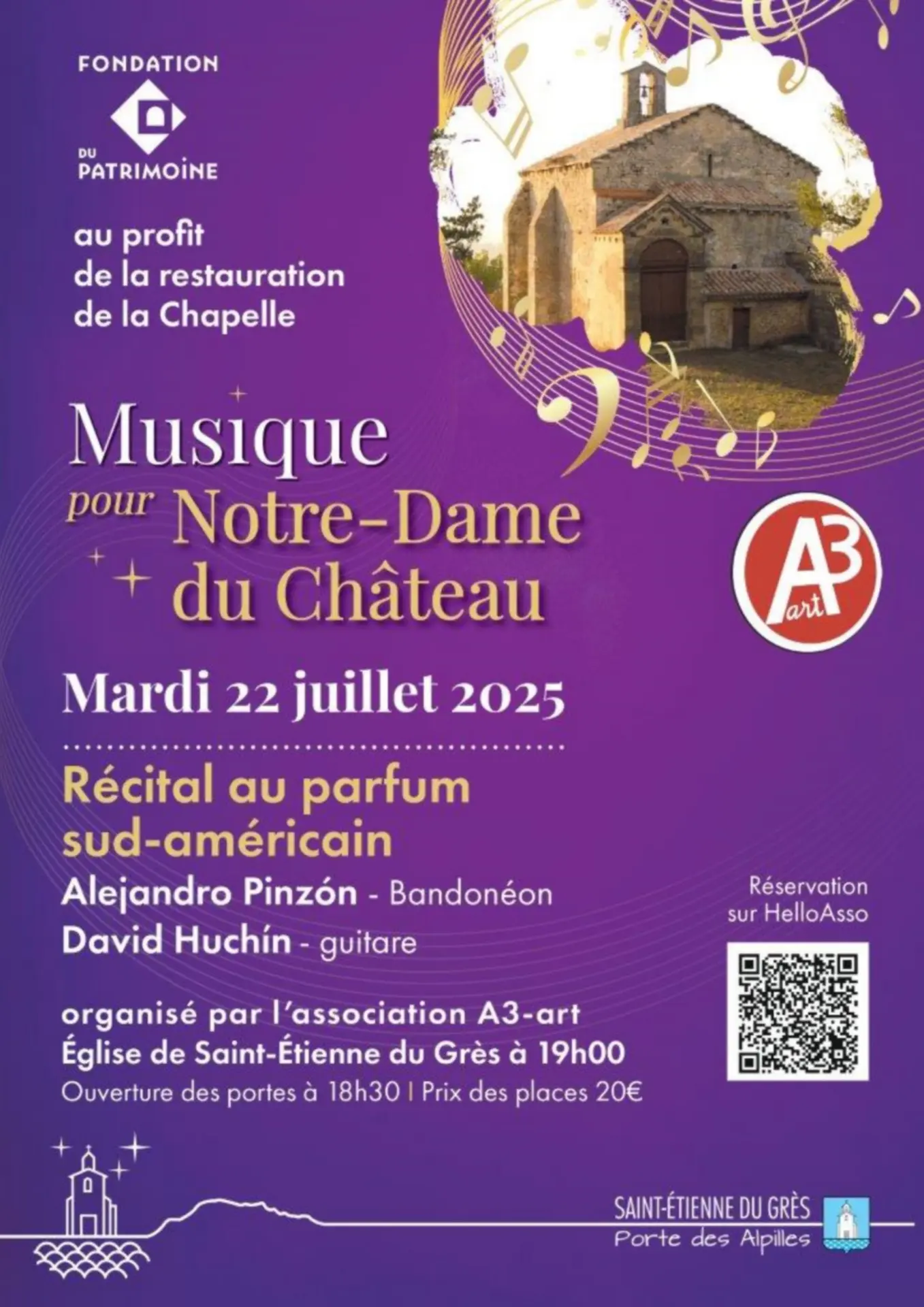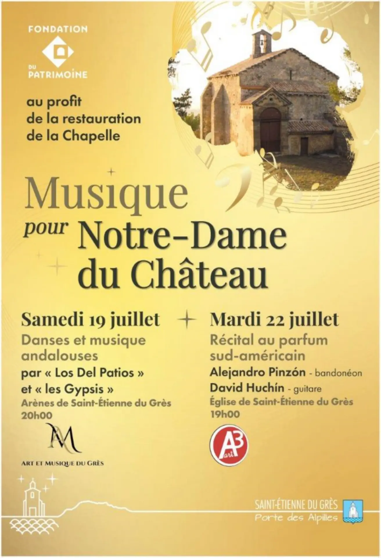 « Musique pour Notre-Dame du Château » Dans le cadre de la restauration de la chapelle, la mairie, en collaboration avec les associations partenaires, organise des soirées musicales au profit du projet.