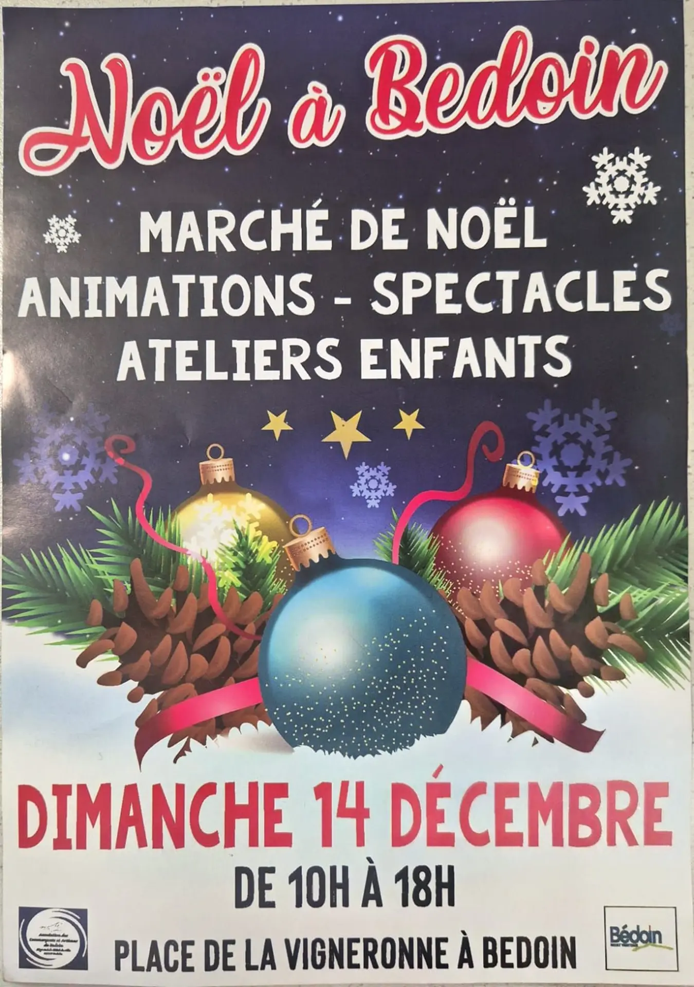 Nous vous attendons nombreux pour le traditionnel marché de Noël des commerçants et artisans de Bédoin le dimanche 14 décembre.