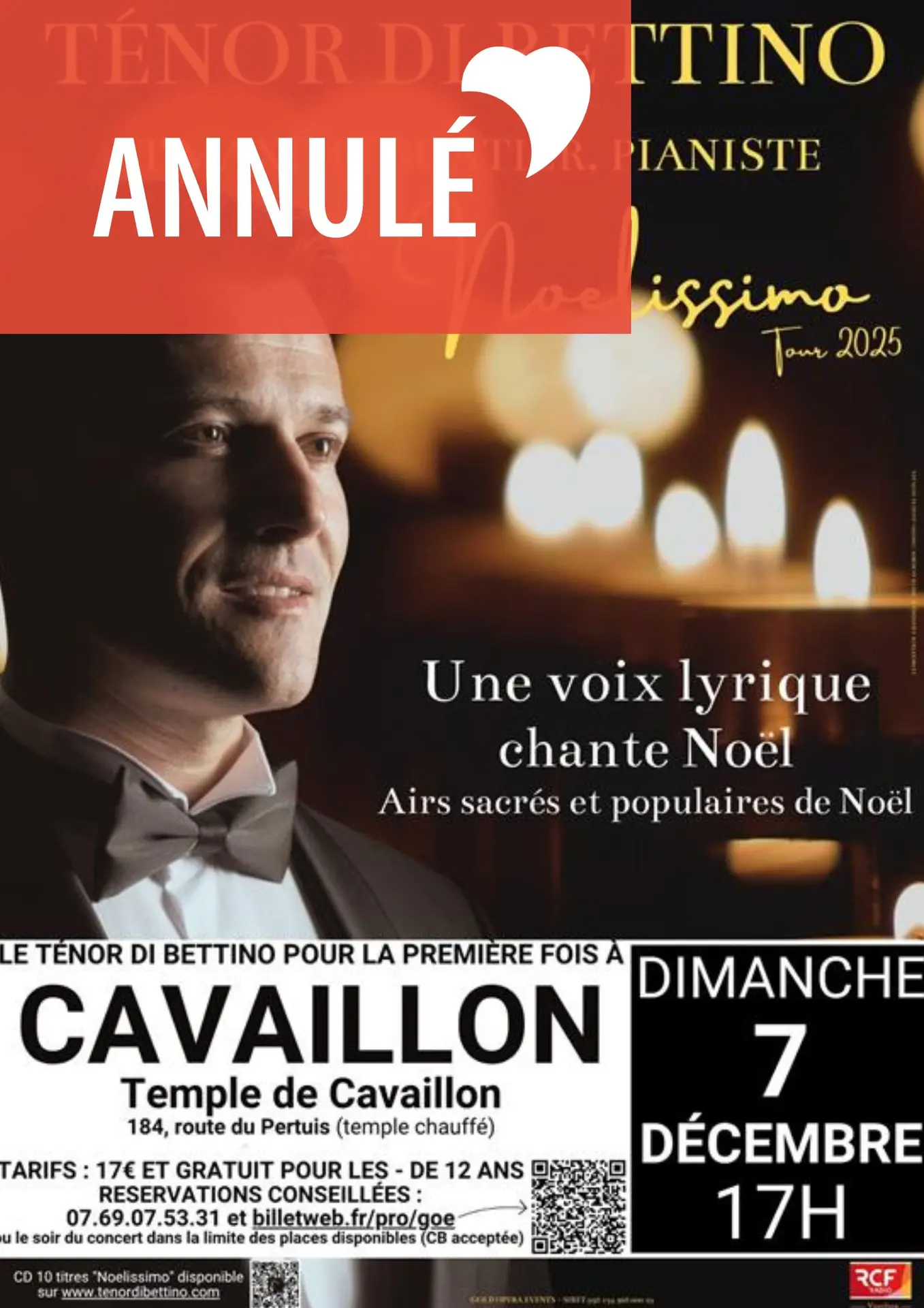 Le Ténor Di Bettino vous propose "Noelissimo" Tour 2025 dimanche 7 décembre 2025 à 17h, au Temple de Cavaillon (84).