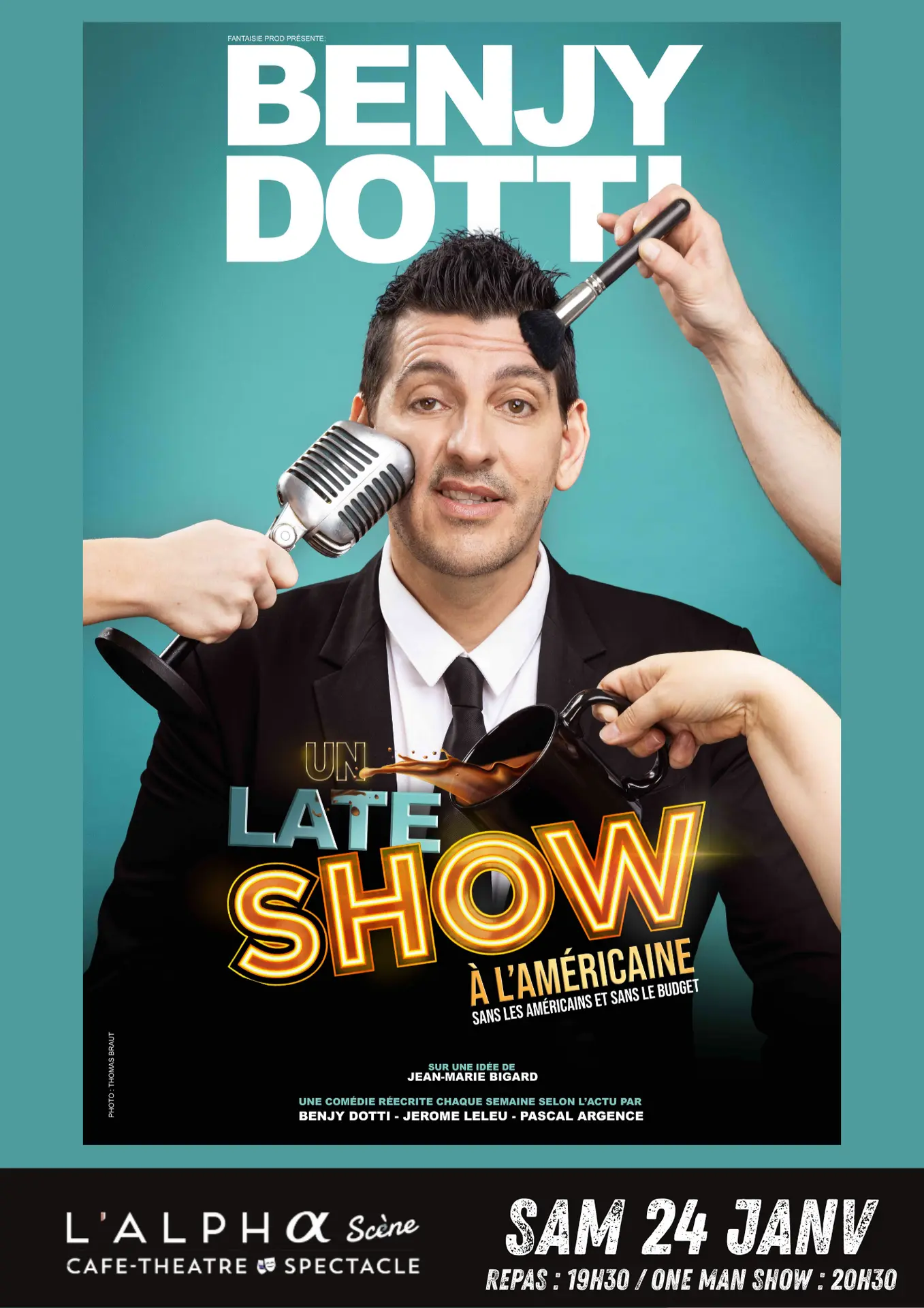 Presque à la manière d'un Jimmy Fallon, Benjy Dotti nous présente son late show à l'américaine, au programme il caricature l'actu, les peoples, les politiques...
