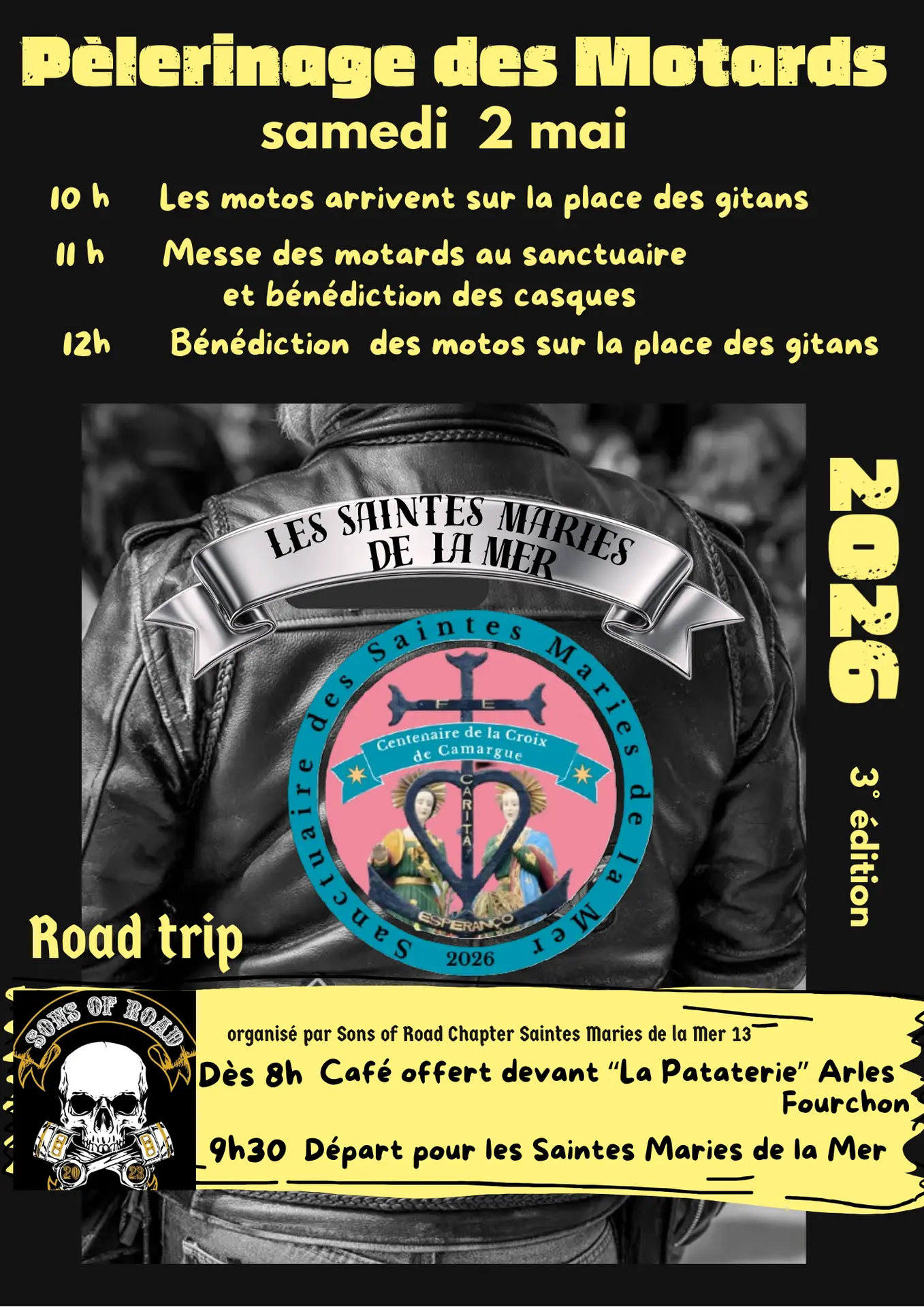 La 3e édition du pèlerinage des motards vous donne rendez-vous à Arles dès 8h pour le départ d’un road trip convivial.