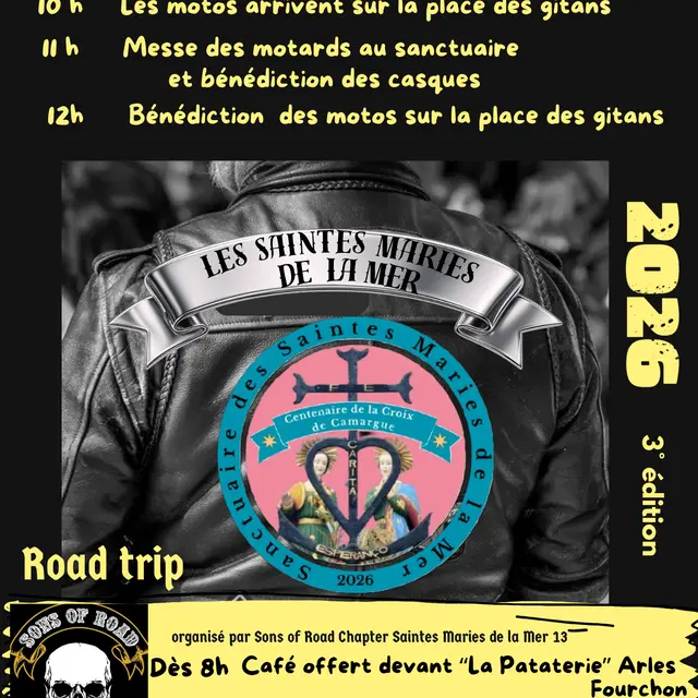 Les participants seront accueillis autour d’un café offert devant la Pataterie, afin de partager un moment chaleureux avant de prendre la route. Une fois le groupe rassemblé, le convoi s’élancera en direction des Saintes-Maries-de-la-Mer, pour une journée placée sous le signe de la passion de la moto, de la découverte et du pélerinage.