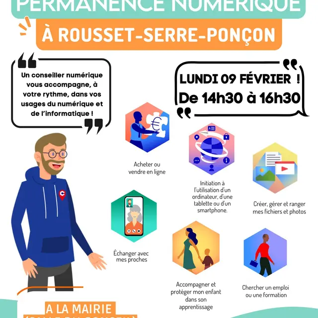 Le numérique est plus que jamais présent dans notre quotidien ! depuis 2021 un conseiller numérique est présent près de chez vous pour vous accompagner gratuitement en France services avec ou sans rendez-vous ainsi qu’en itinérance sur inscription OBLIGATOIRE sur le territoire de la CCSPVA.