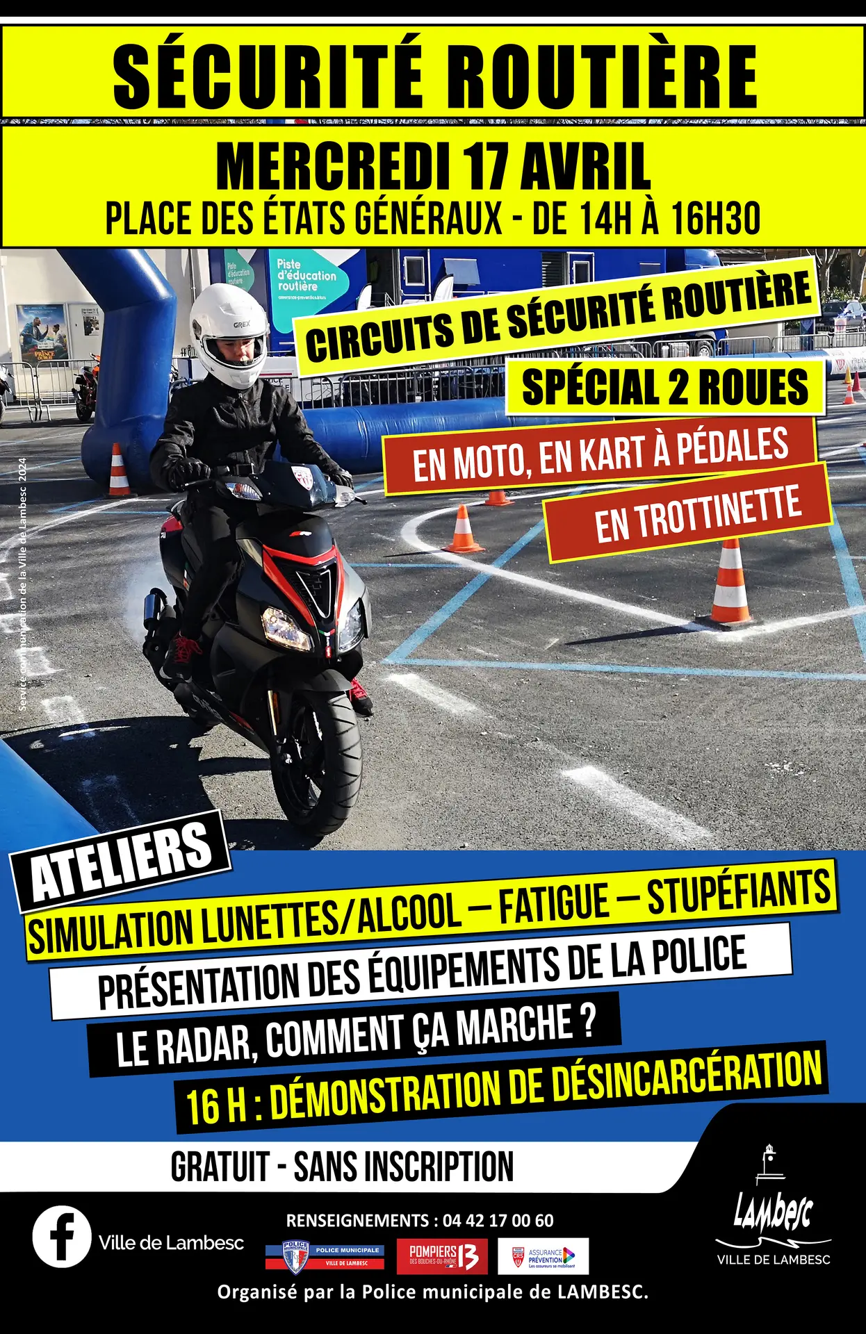Présence de nombreux ateliers de Prévention Routière tels que des pistes d’éducation routière (motos, karts à pédales, EDPM), séances pratiques encadrées par les CRS sur les trajectoires à suivre à moto, stand de présentation d’équipements de la Police Municipale.