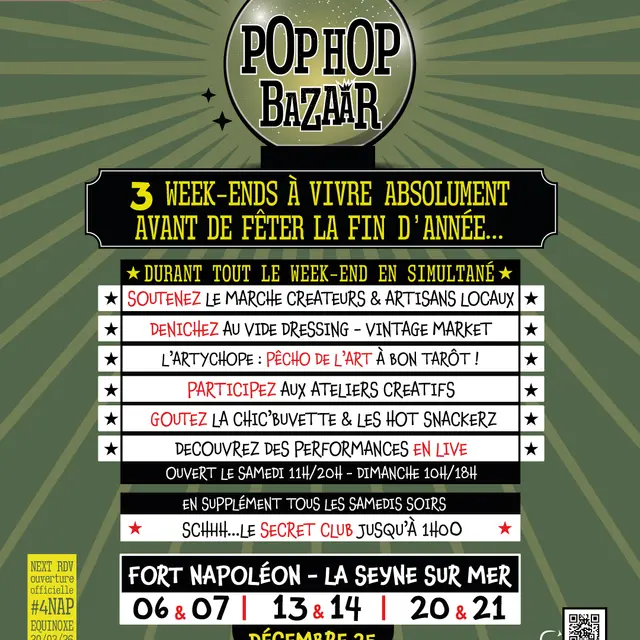 Le Fort Napoléon s’éveille en cette fin d’année et ouvre ses portes à un événement inédit : le POP HOP BAZAAR, un rendez-vous chaleureux et créatif qui réunit le meilleur de la scène locale en grand angle.