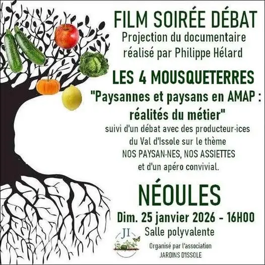 Un documentaire réalisé par Philippe Hélard. Il sera suivi d'un débat avec des producteurs et productrices du Val d'Issole sur le thème nos paysan(nes), nos assiettes et d'un apéritif convivial.