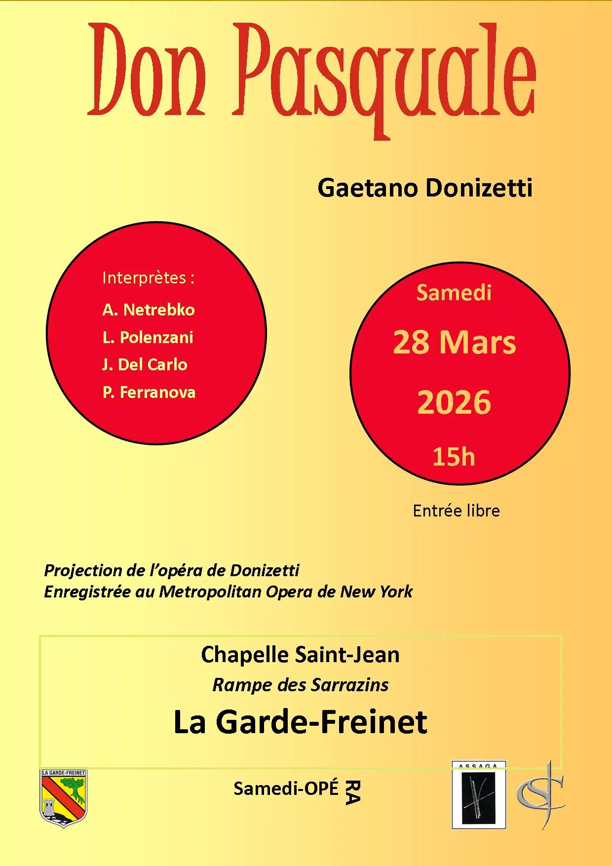 Projection de l'opéra de Gaetano Donizetti enregistré au Metropolitan Opera de New York