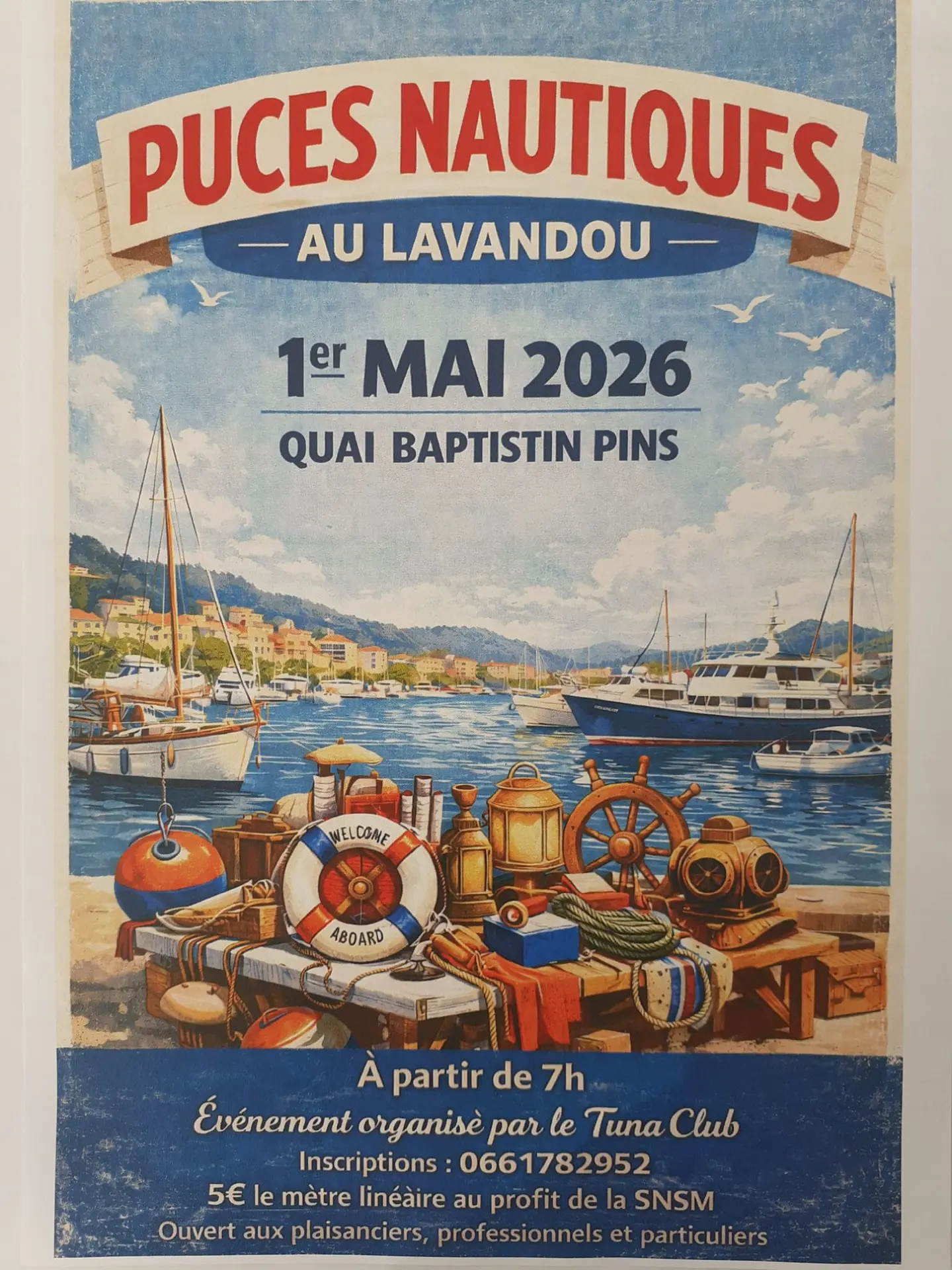 le Tuna Club association de pêche sportive en haute mer organise des puces nautiques sur le port du Lavandou, Quai Baptistin Pins. venez chiner ou flâner à l’occasion des puces nautiques.