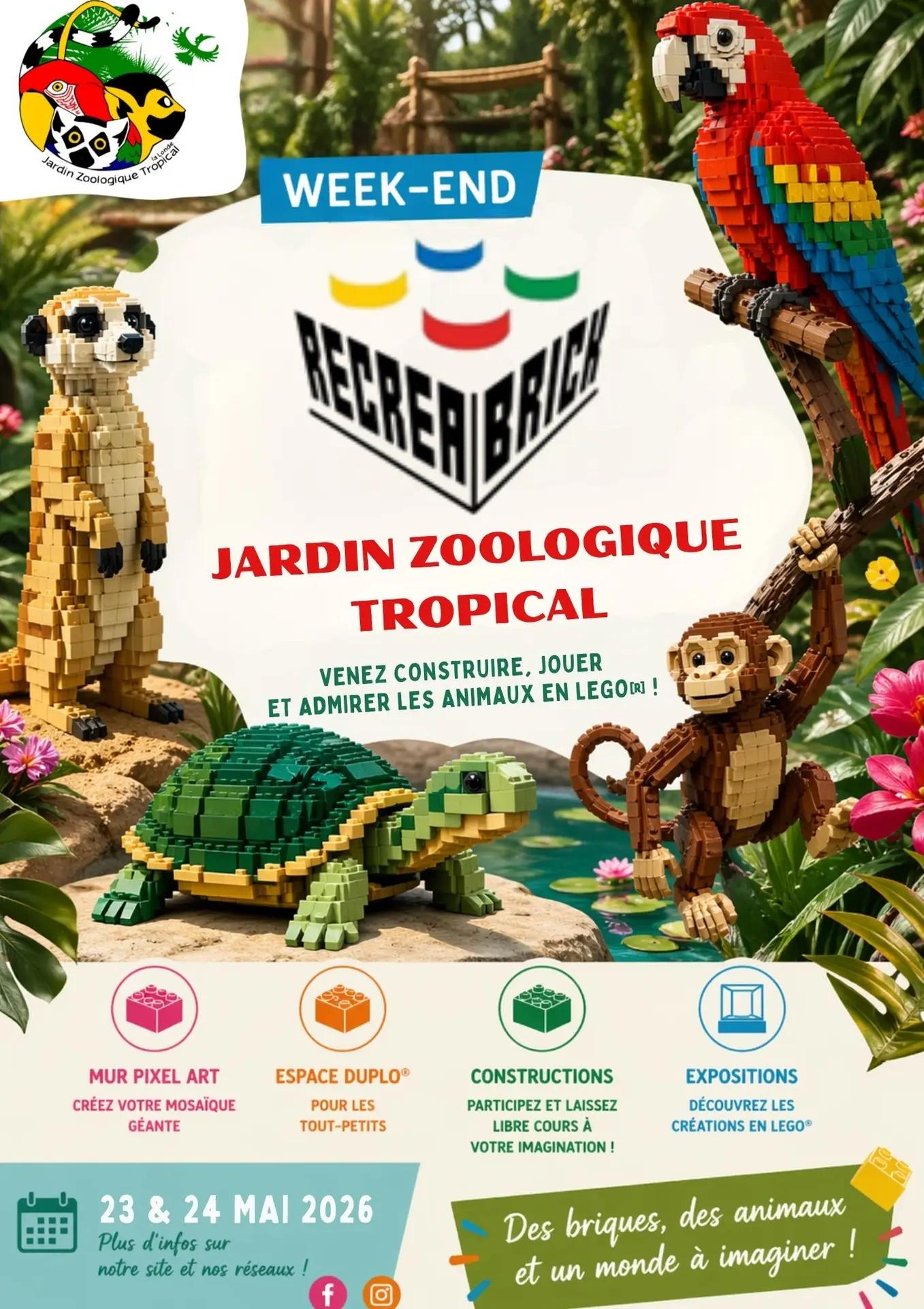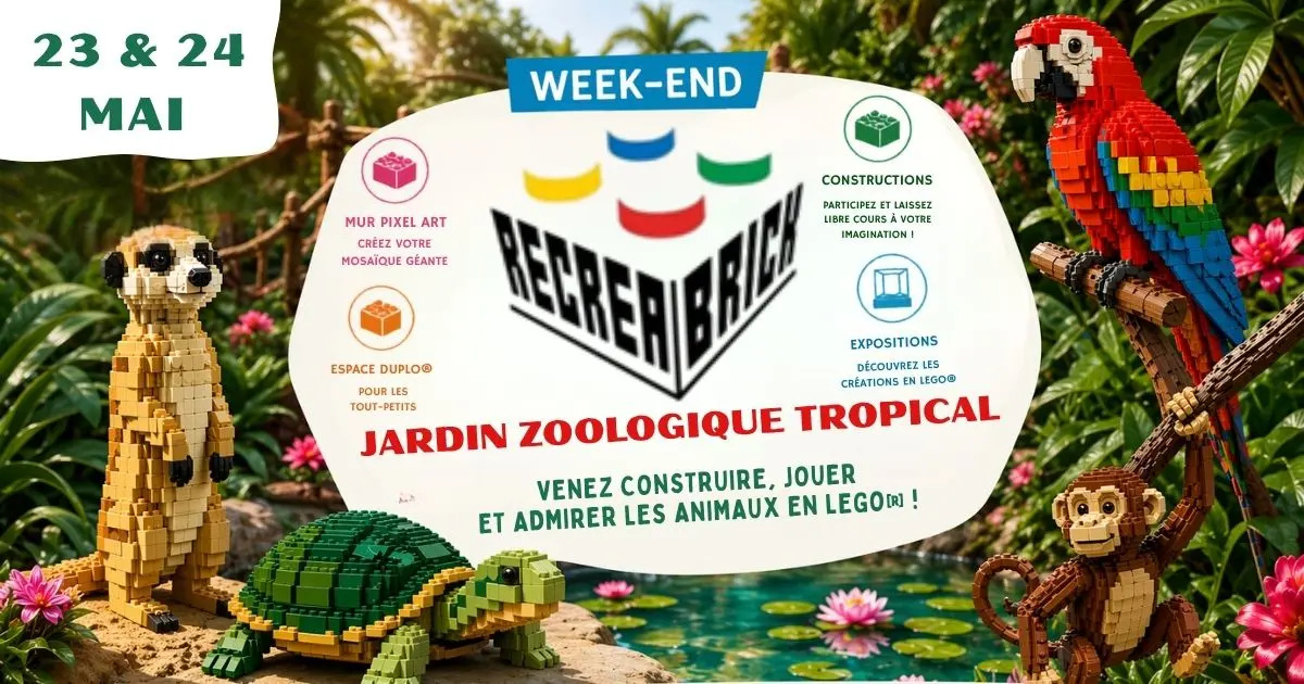 Samedi 23 et dimanche 24 mai, les briques font leur grand retour au Jardin Zoologique Tropical pour un week-end placé sous le signe de l’imagination, du jeu et des animaux.
