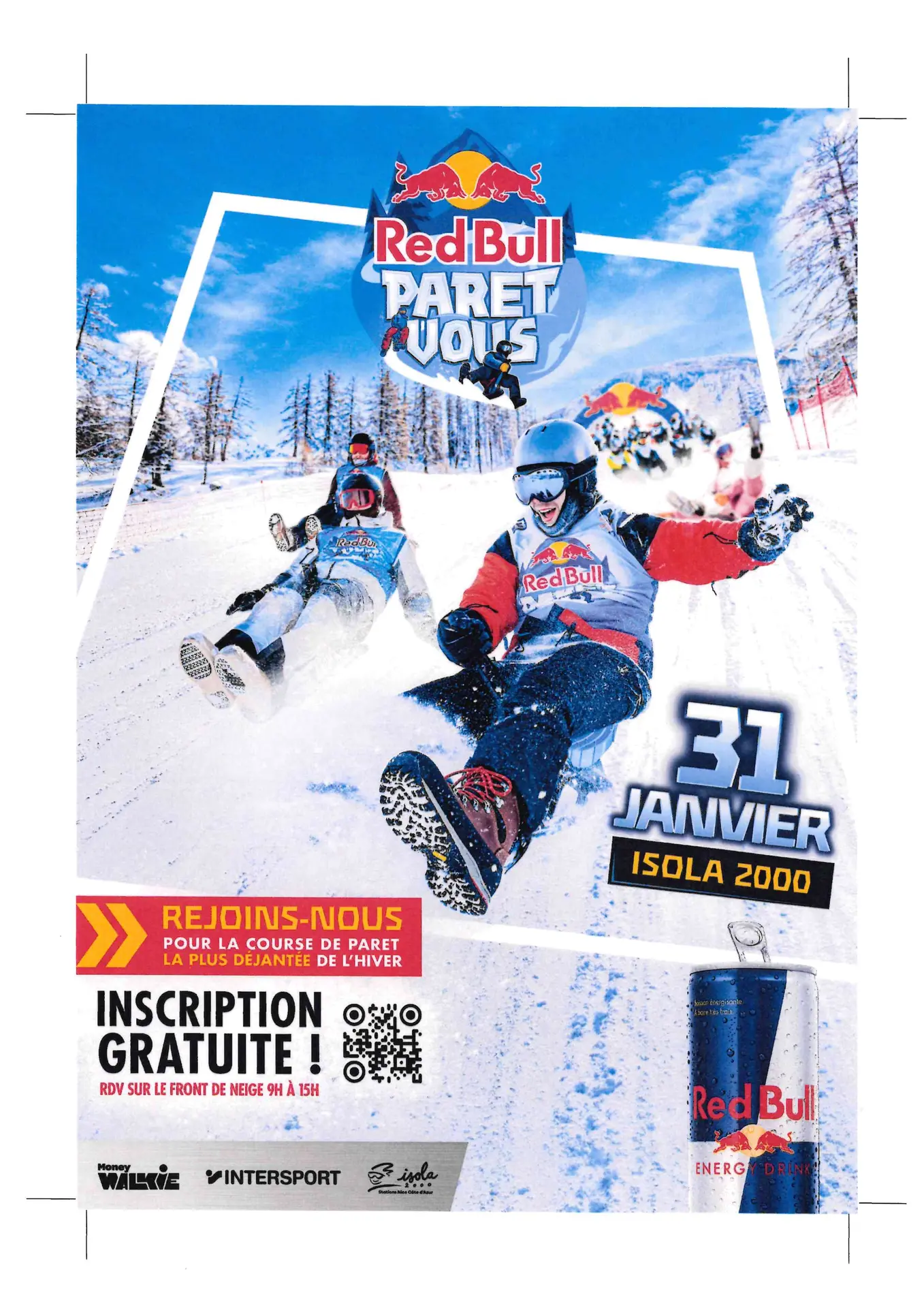 Place à la folie du paret, cette luge traditionnelle sur un seul patin, revisitée à la sauce Red Bull. Une course déjantée, accessible et fun, qui promet vitesse, glissades et éclats de rire sur les pistes !