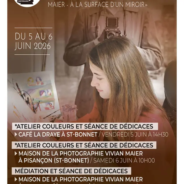 Dans le cadre du centenaire de Vivian Maier, Paulina SPUCCHES, illustratrice et scénariste , autrice "d'au-delà du miroir", animera un atelier couleurs, adules et enfants, à partir des photos de Vivian et de son album.