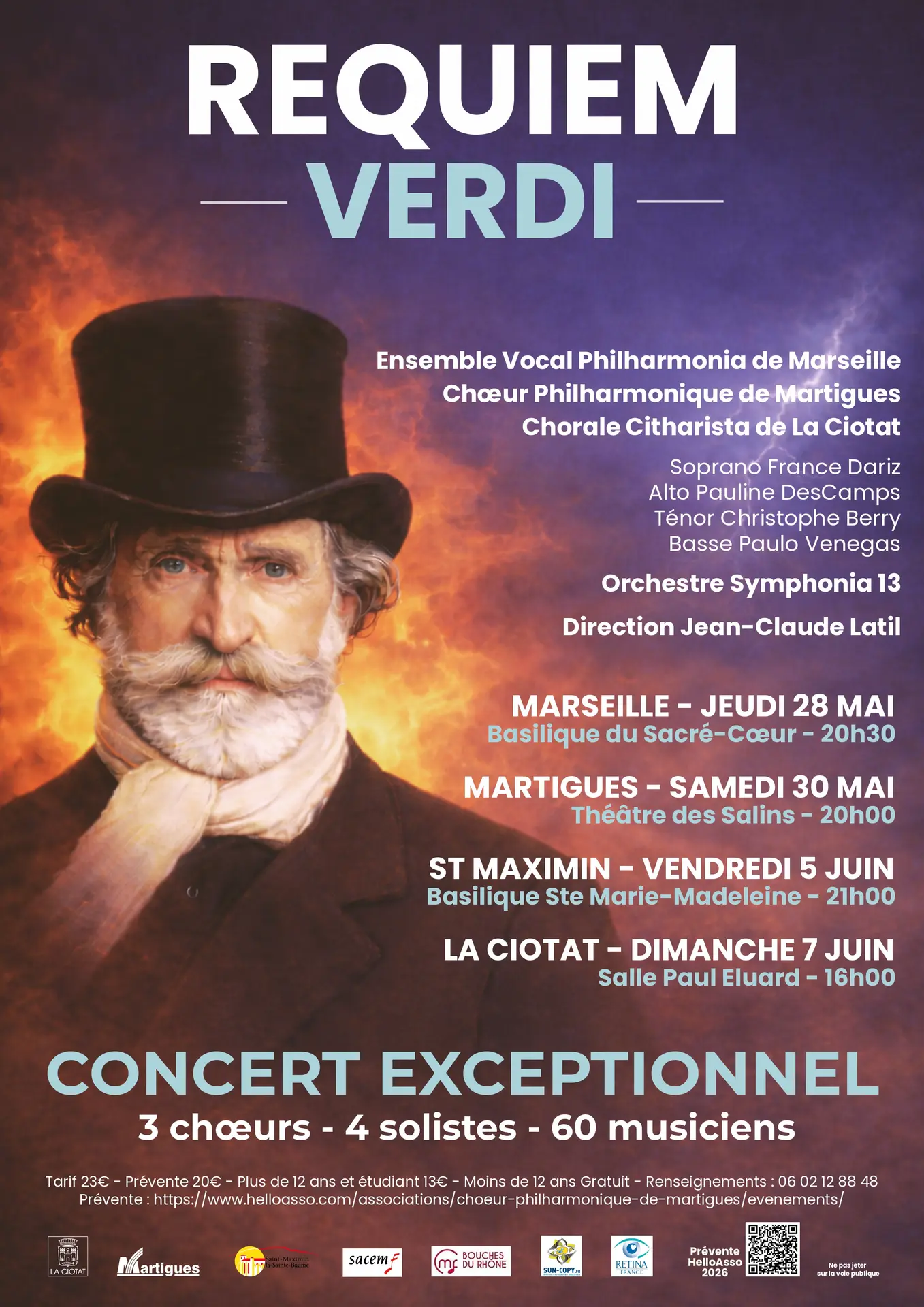 140 choristes, 60 musiciens, 4 solistes donnent le Requiem de Verdi, sous la direction de Jean-Claude Latil.