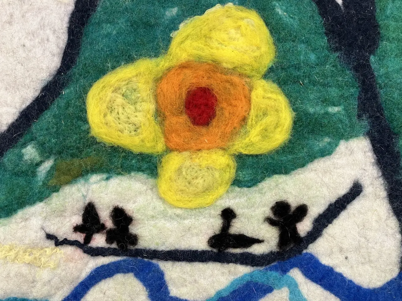 Avec Laëtitia Cuvelier, poétesse, les élèves explorent l’écriture poétique à partir d’images qu’elle capte dans le quotidien du Refuge Solidaire de Briançon. Accompagné·es par le musicien et slammeur Fred Nevché, ils et elles mettent en voix et en musique ces textes. À la suite de son exposition « Une androsace, Vénus et ses bergères » aux Capucins en 2024, les élèves se rendent dans l’atelier de l’artiste Radouan Zeghidour. Ils et elles y découvrent les techniques de la laine feutrée et réalisent deux compositions en laine colorée, mettant en images ces récits, par-delà les montagnes.