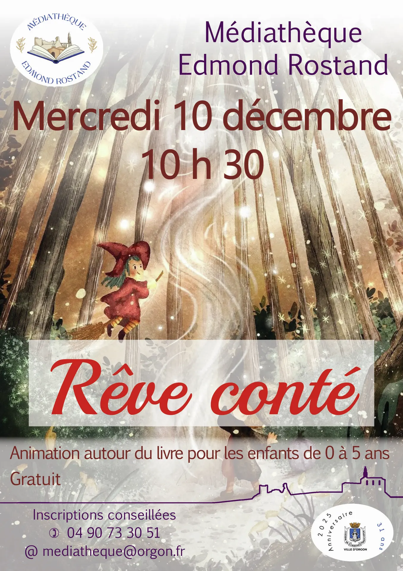 Rêve conté pour les enfants de 0 à 5 ans à la Médiathèque. Inscriptions conseillées auprès de la Médiathèque.