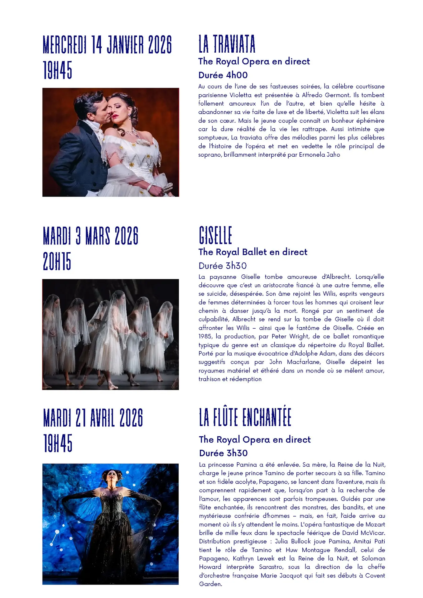 Toutes les séances : Coupe de champagne et gâteaux de soirée offerts à l’entracte