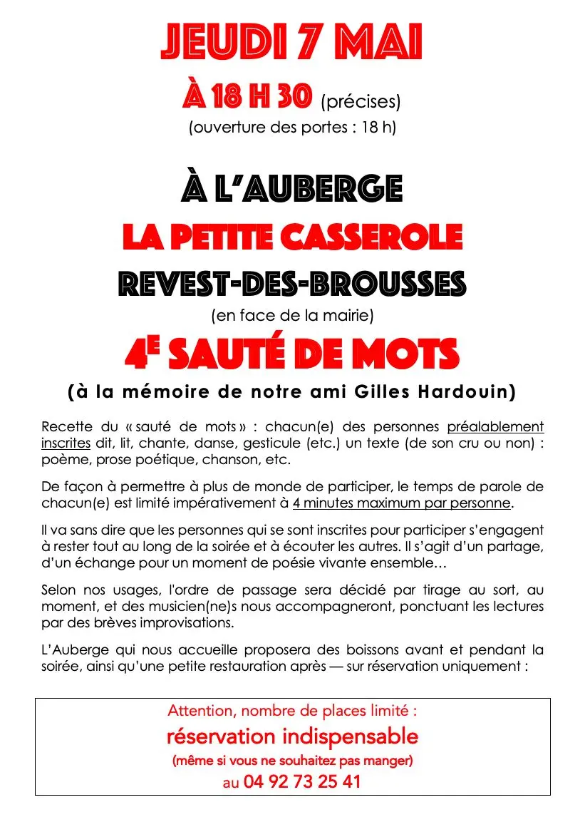 Réservation indispensable. Nombre de places limité. (même si vous ne souhaitez pas manger).