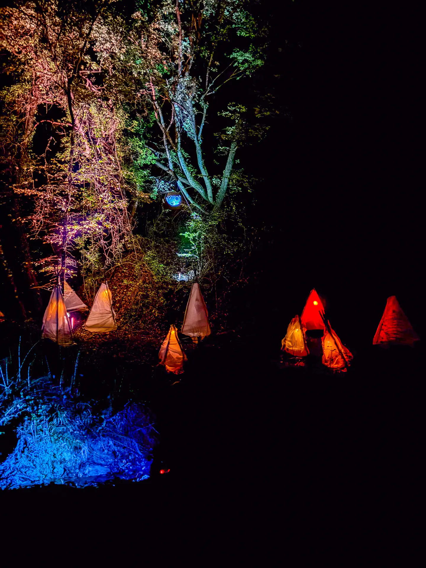 Découvrez l'univers féerique et poétique imaginé par Emmanuelle Baude et un architecte de lumières dans les bois de Tour Campanets.